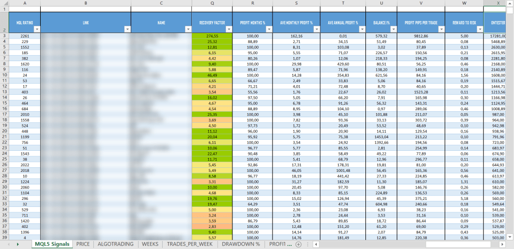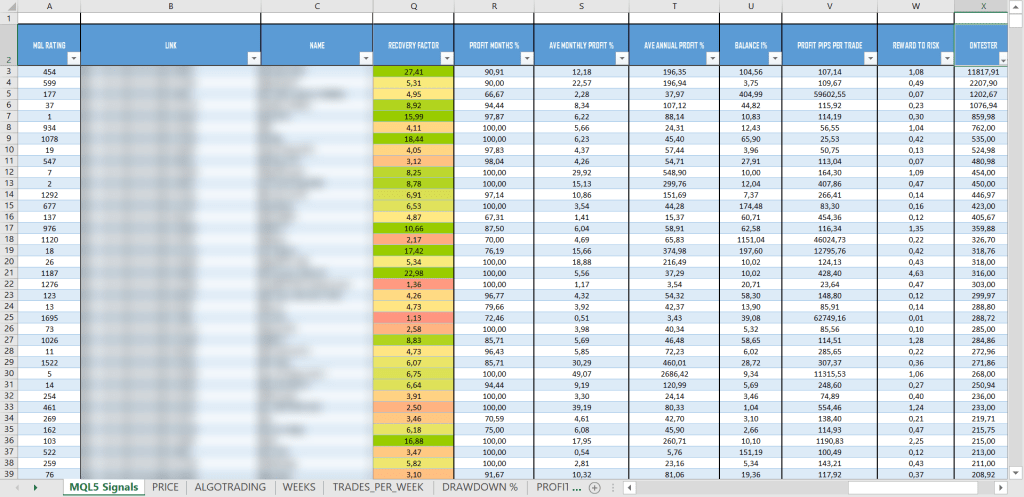 After collecting the main performance indicators, we sorted the signals according to our proprietary metric β a custom parameter developed using our author formula, which evaluates the shape and stability of each signalβs equity curve.